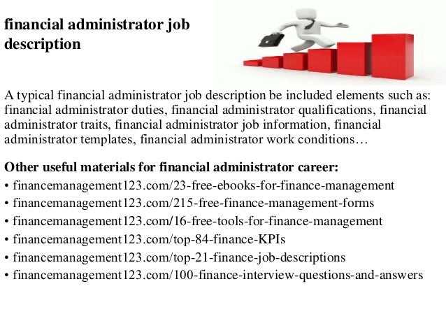 Administration managers generally handle budgets, either for their department alone, or in smaller organizations, the entire business'. Describe in what way the position contributes to and impacts on the organization. The functions of the finance manager position can be considered identical to a treasurer position, or as a light treasurer who has additional analysis responsibilities that include support of the management team in a variety of. Use this sample job description for finance manager to understand the work culture, job responsibilities and duties to manage at this job as the finance manager of a company handles all the financial issues of the company he should possess a degree in accounting, finance, etc. Responsibilities also include production of financial reports.
